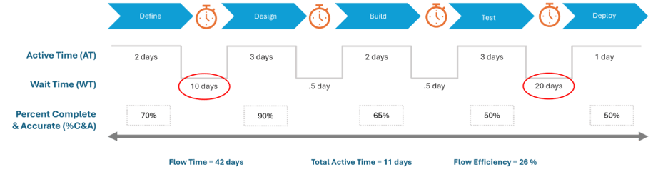 These are dramatic improvements, and the team realizes that once they get them in place they can further improve by increasing the Percent Complete & Accurate during the Build state and by reducing the Active Time for each state. These improvements will be added to their backlog and addressed as part of their continuous improvement effort.