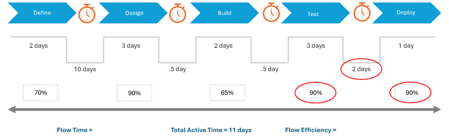 The team focuses their attention on how they can decrease their Flow Time and improve their Flow Efficiency by creating a Future State Value Stream. They start by attacking each bottleneck.